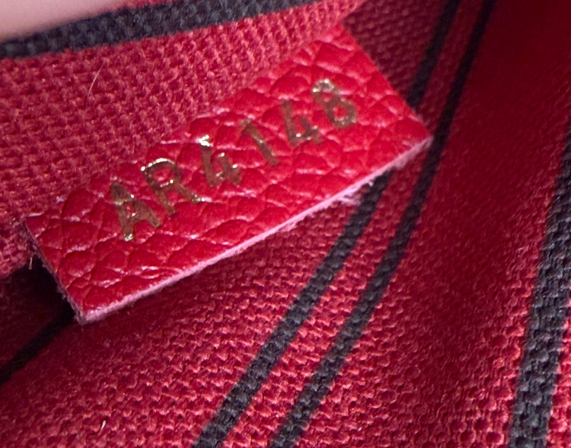 - Soft Cerise (Red) leather with beautiful embossing of the monogram pattern throughout