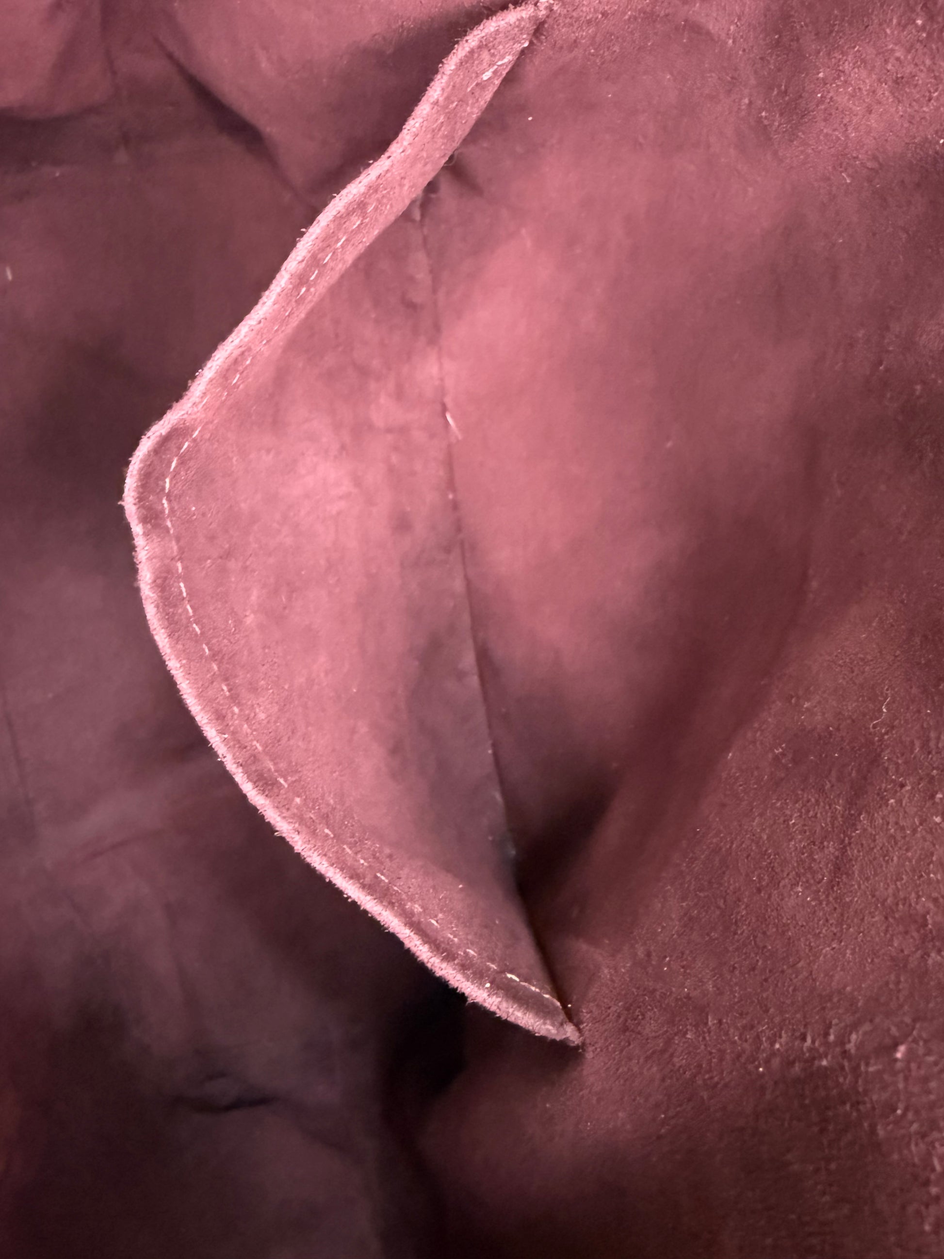 •Merlot colored microfiber lining is in very good overall condition and is free from stains, foul odors, and rips (there is light pilling present)