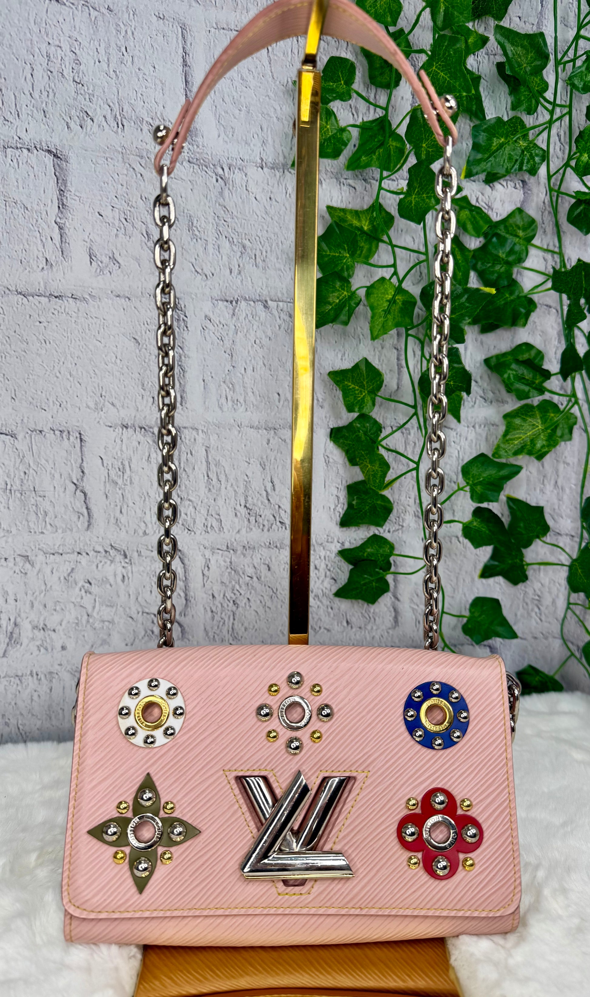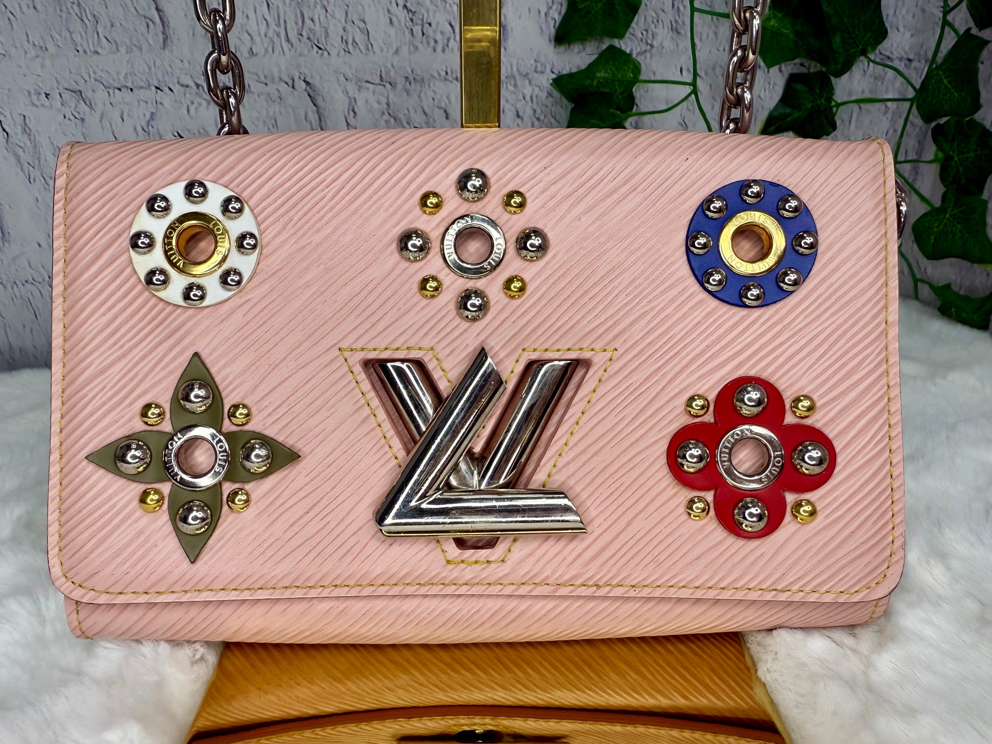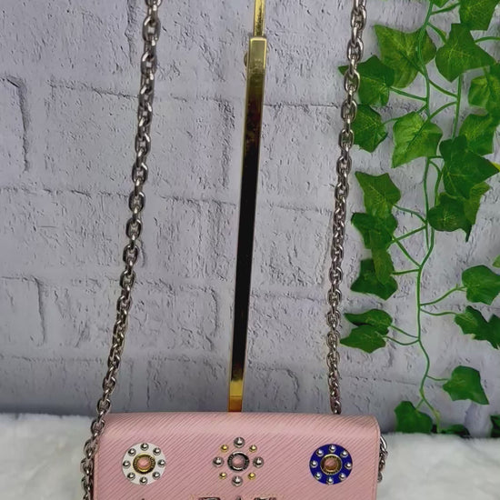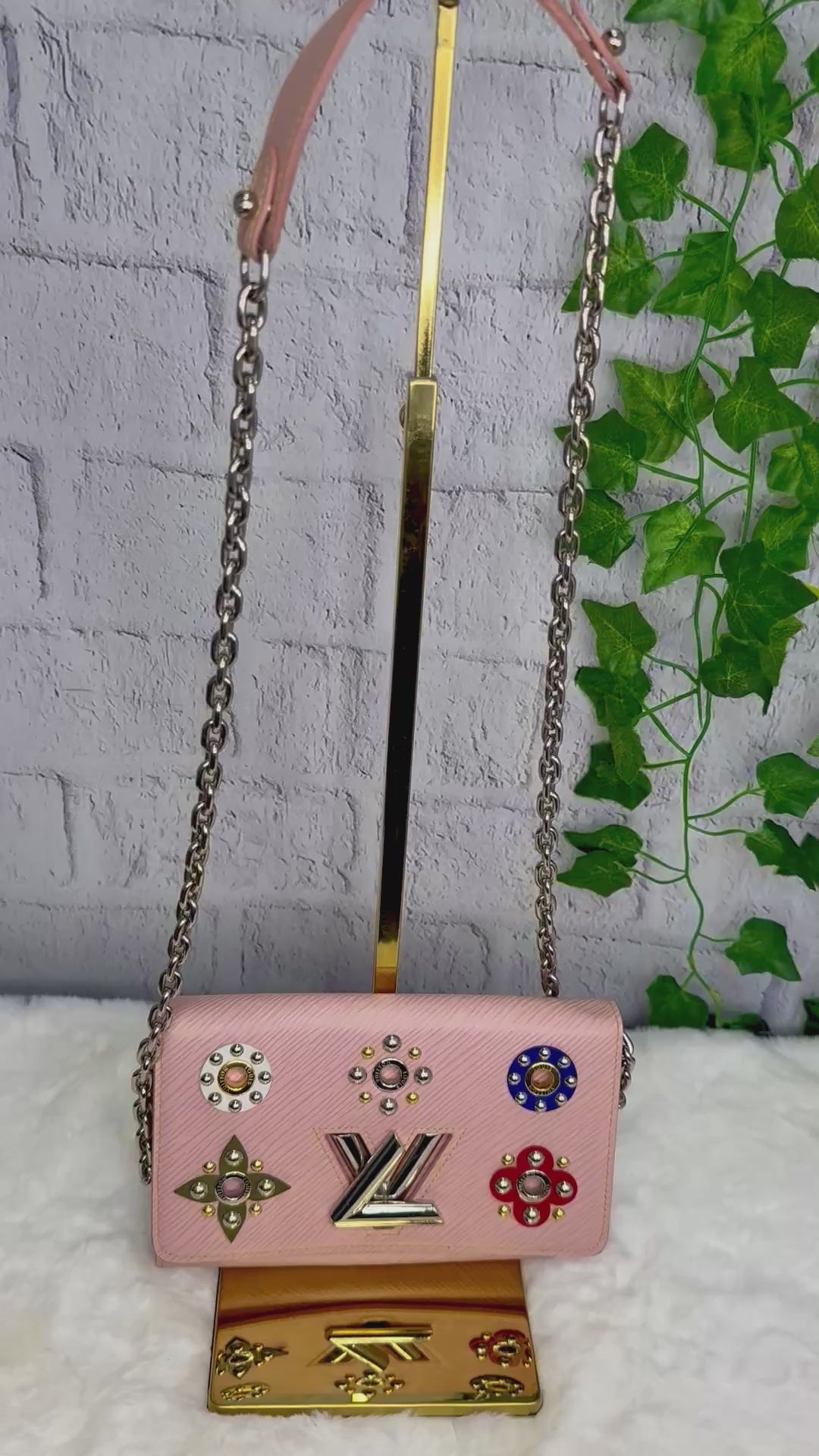 The Louis Vuitton Mechanical Flowers Twist Wallet on Chain is a playful yet elegant twist (literally!) on LV’s classic wallet-on-chain design. Crafted from smooth Epi leather, it features the brand’s signature LV Twist lock—a sleek metal clasp that rotates into the iconic logo. What makes this piece stand out is the mechanical flower motif: colorful pop-art–style flowers with moving parts, adding a whimsical touch to a structured, sophisticated silhouette.