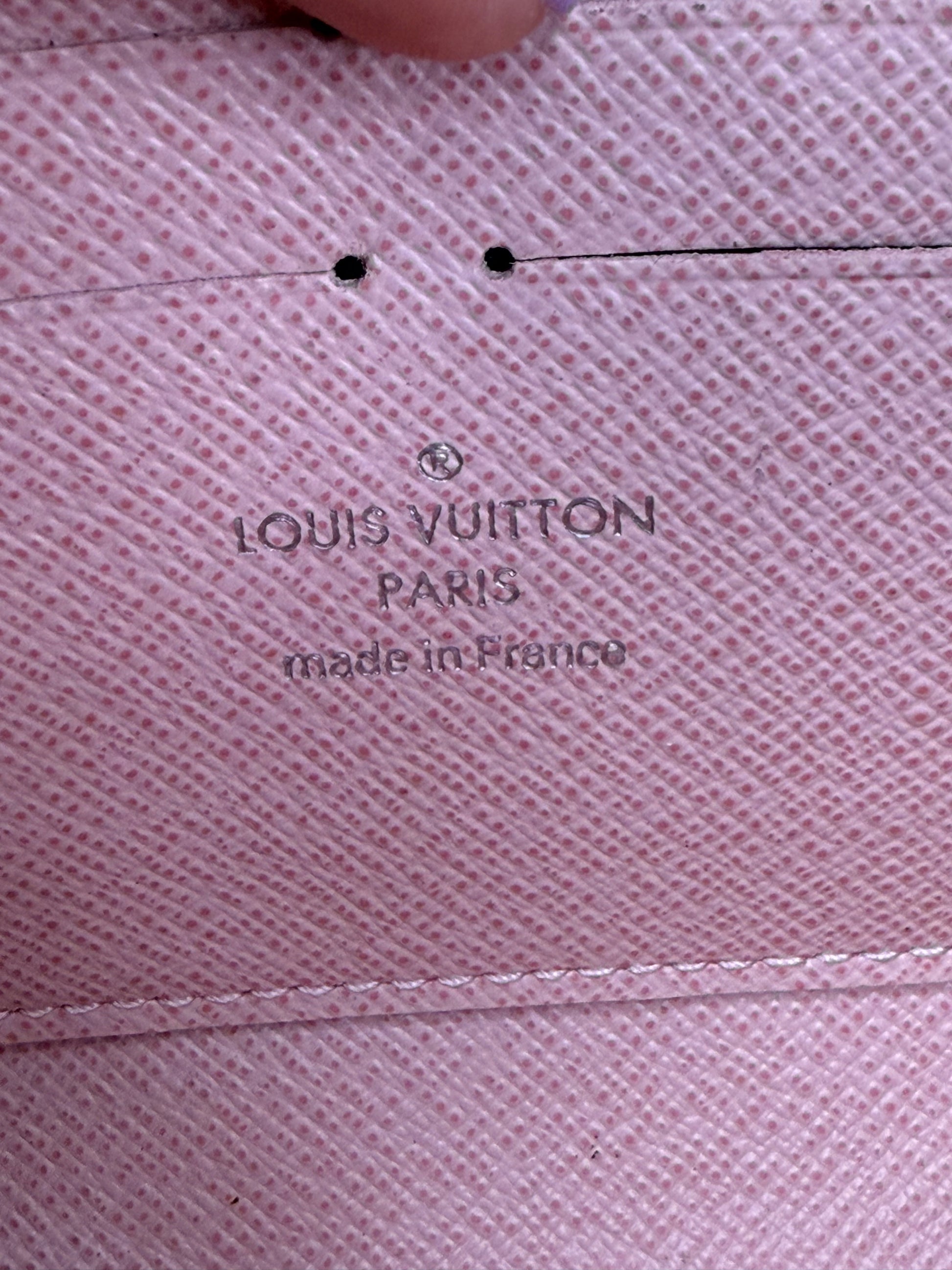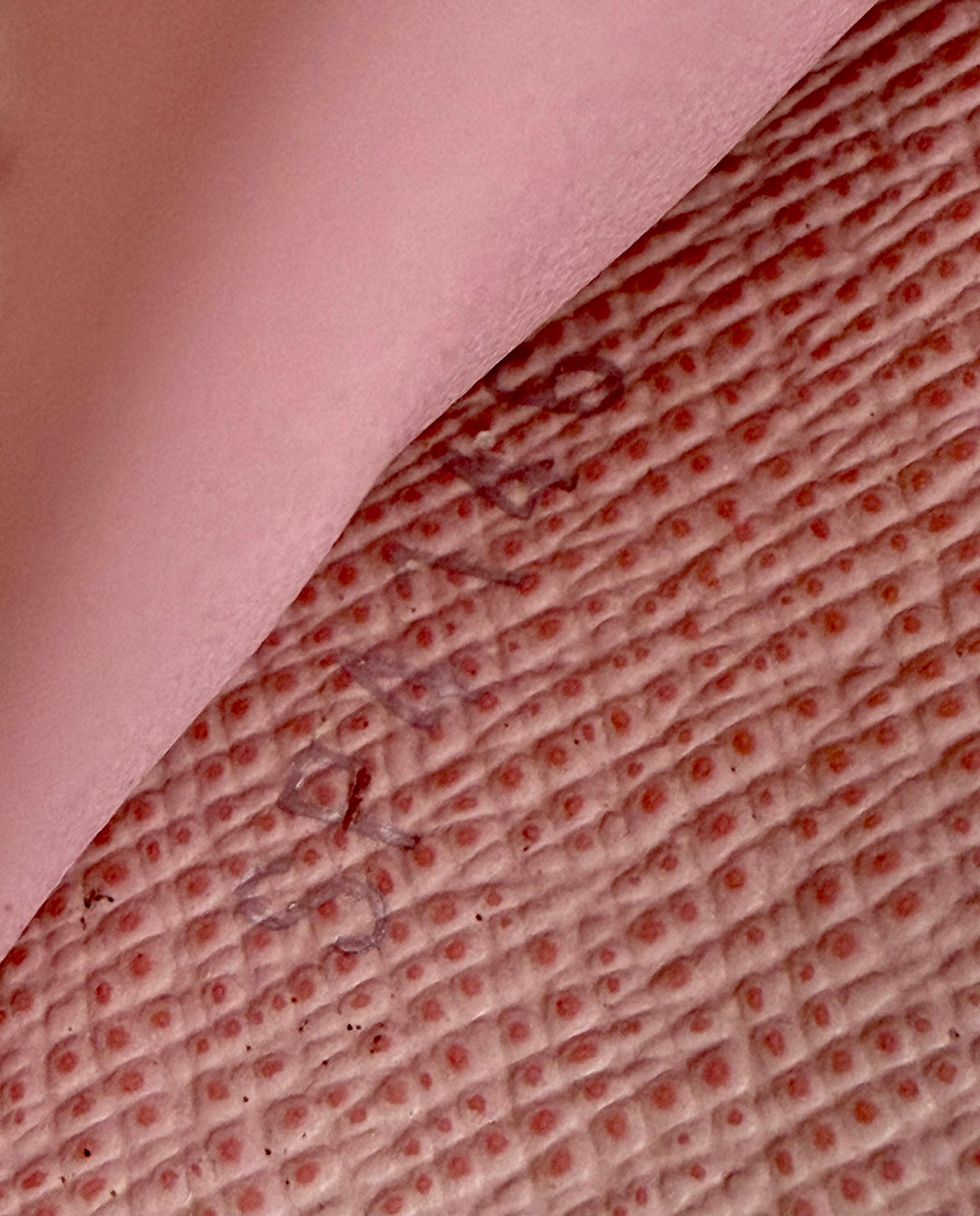 Interior: Don’t let the size fool you! With built-in card slots, an open compartment that can accommodate an iPhone ProMax (or a similar device), and a zip compartment, this item offers efficient storage. The interior shows minimal signs of wear and is odor-free. Please note a small transfer spot of darker pink (see photos).
