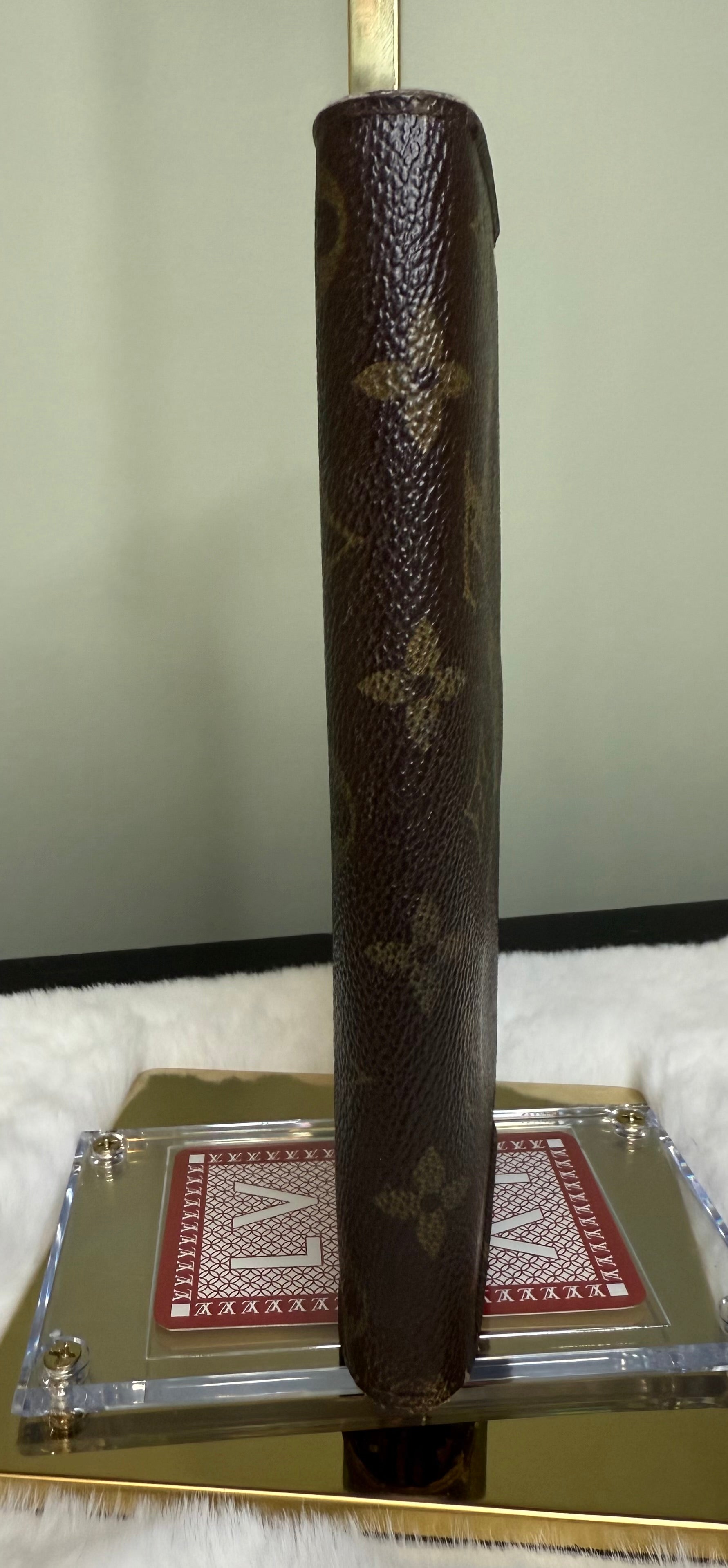 🤎 Exterior: Monogram coated canvas in good condition - has some wear/marks on front trim and sides - has small separation on one side (please see all photos). Two tiny white dots on front. Snaps still work nicely.